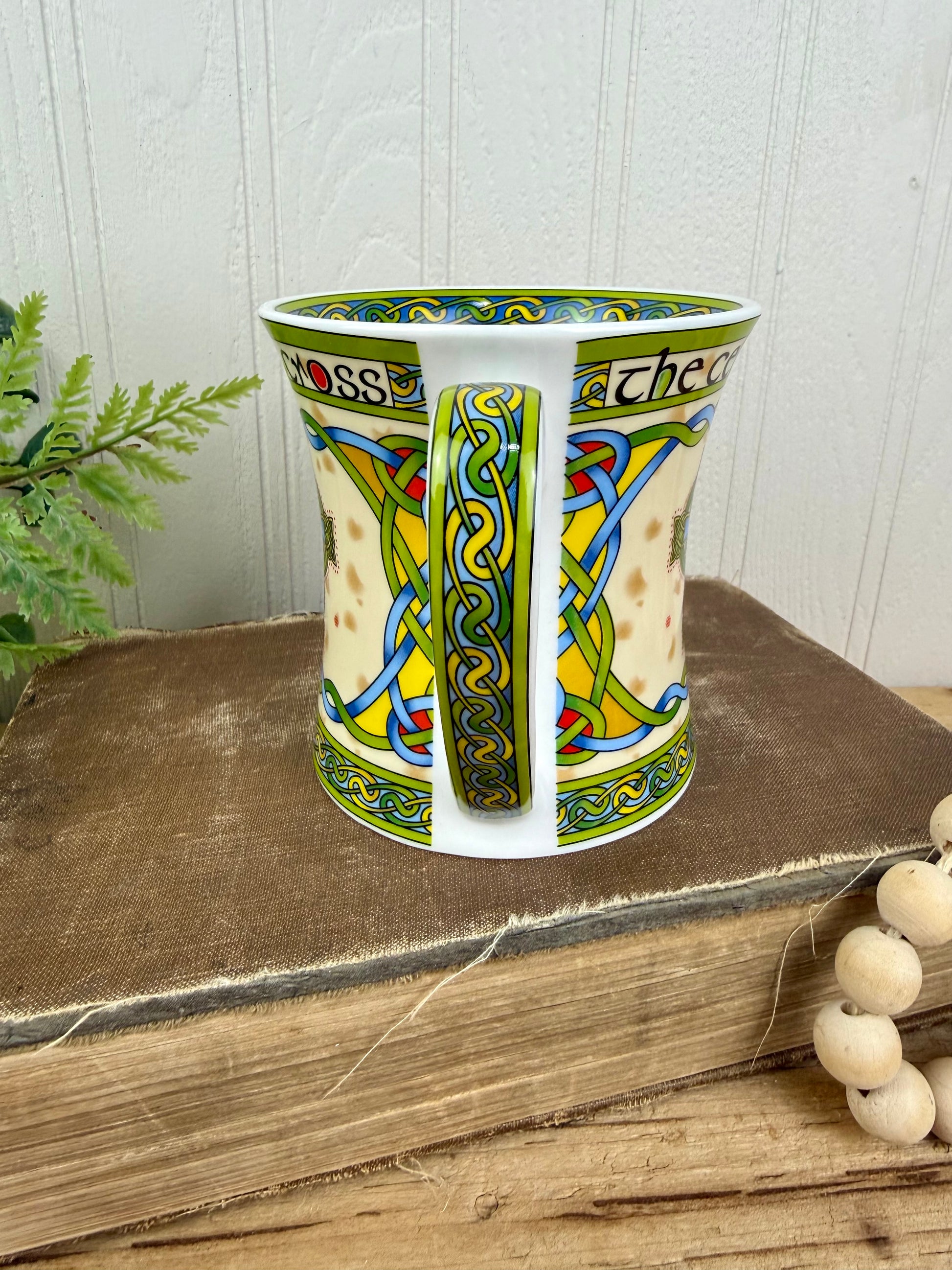 Enjoy your favorite beverage in the Celtic Cross Irish Weave Bone China Mug, beautifully adorned with vibrant designs inspired by 9th-century Celtic manuscripts. Its delicate craftsmanship ensures that every sip is not just refreshing, but also a celebration of rich cultural heritage. Perfect for daily use or special occasions.