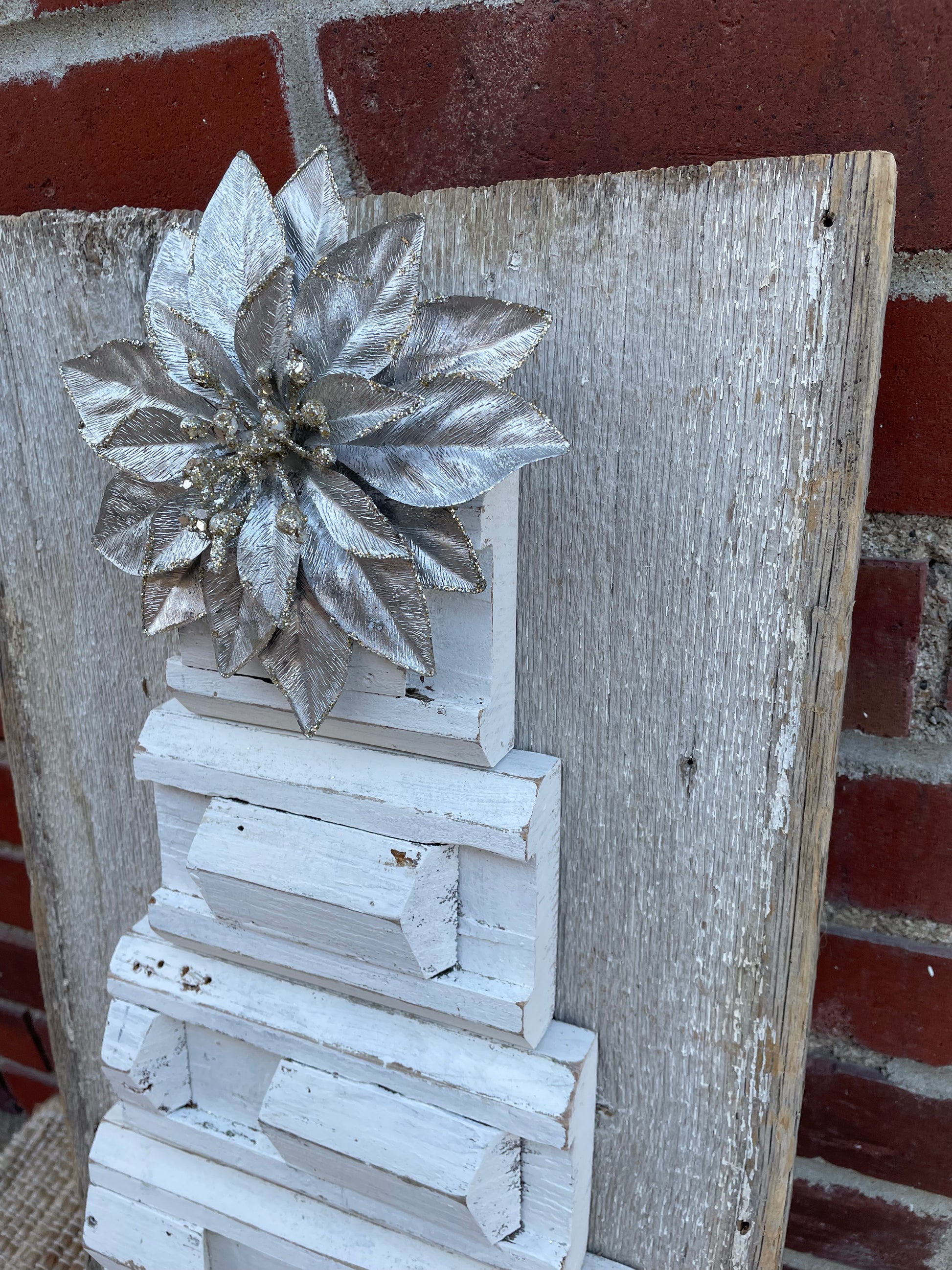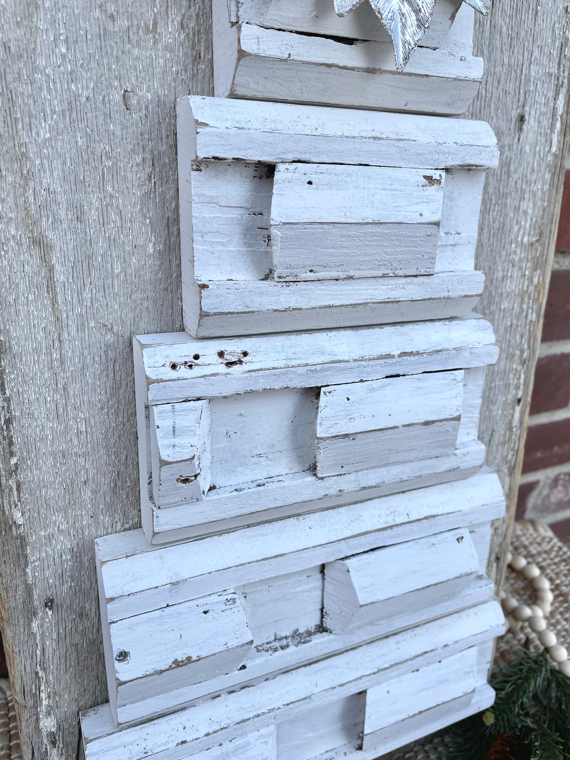 Handmade Reclaimed Wood Salvage Christmas Tree with Silver Flower