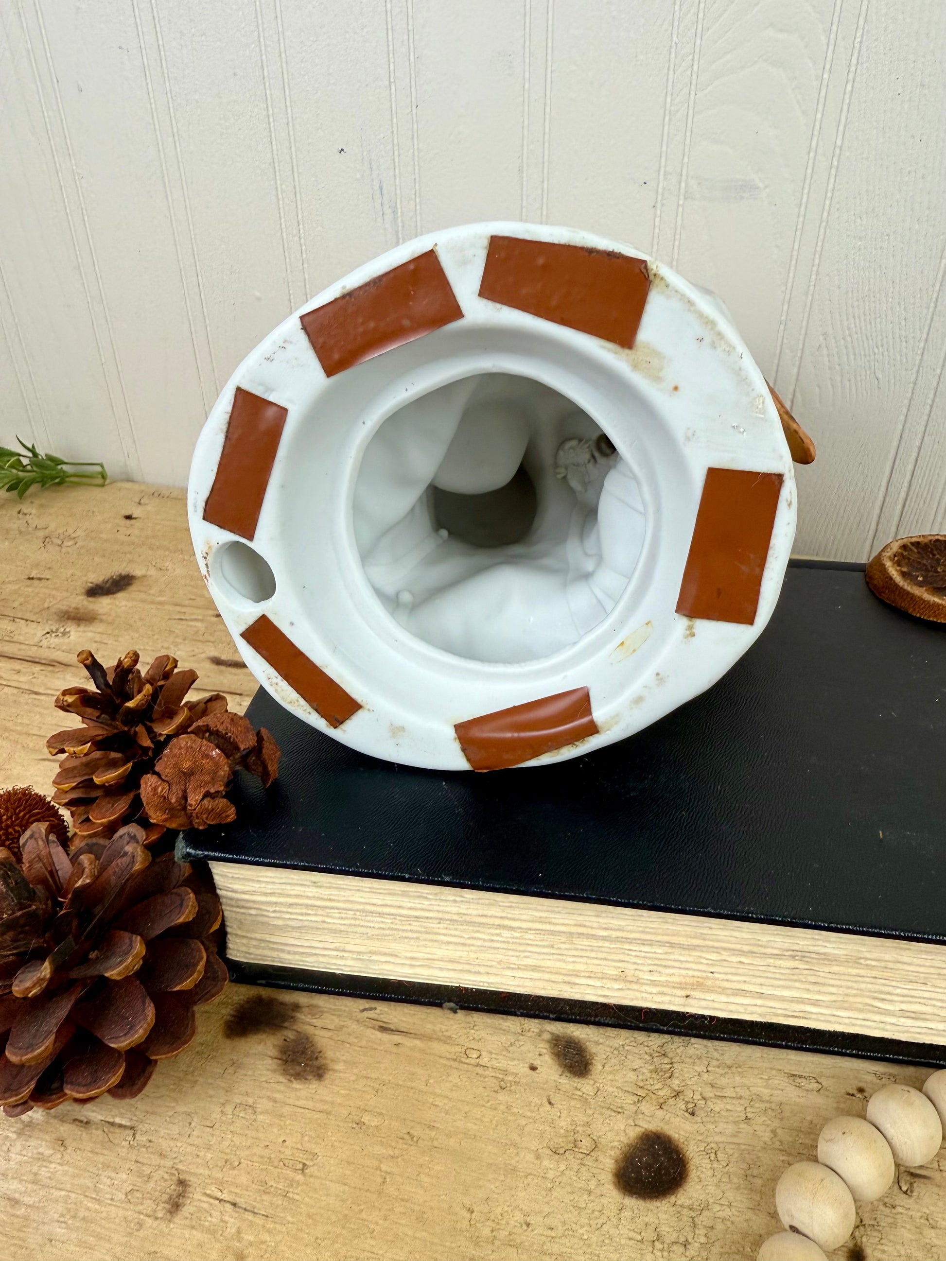 This mid century ceramic figurine features a charming depiction of a mama and baby owl. Its warm, fall-inspired colors add a touch of nostalgia to any decor. In excellent condition, this vintage piece is sure to add a delightful touch to your home.