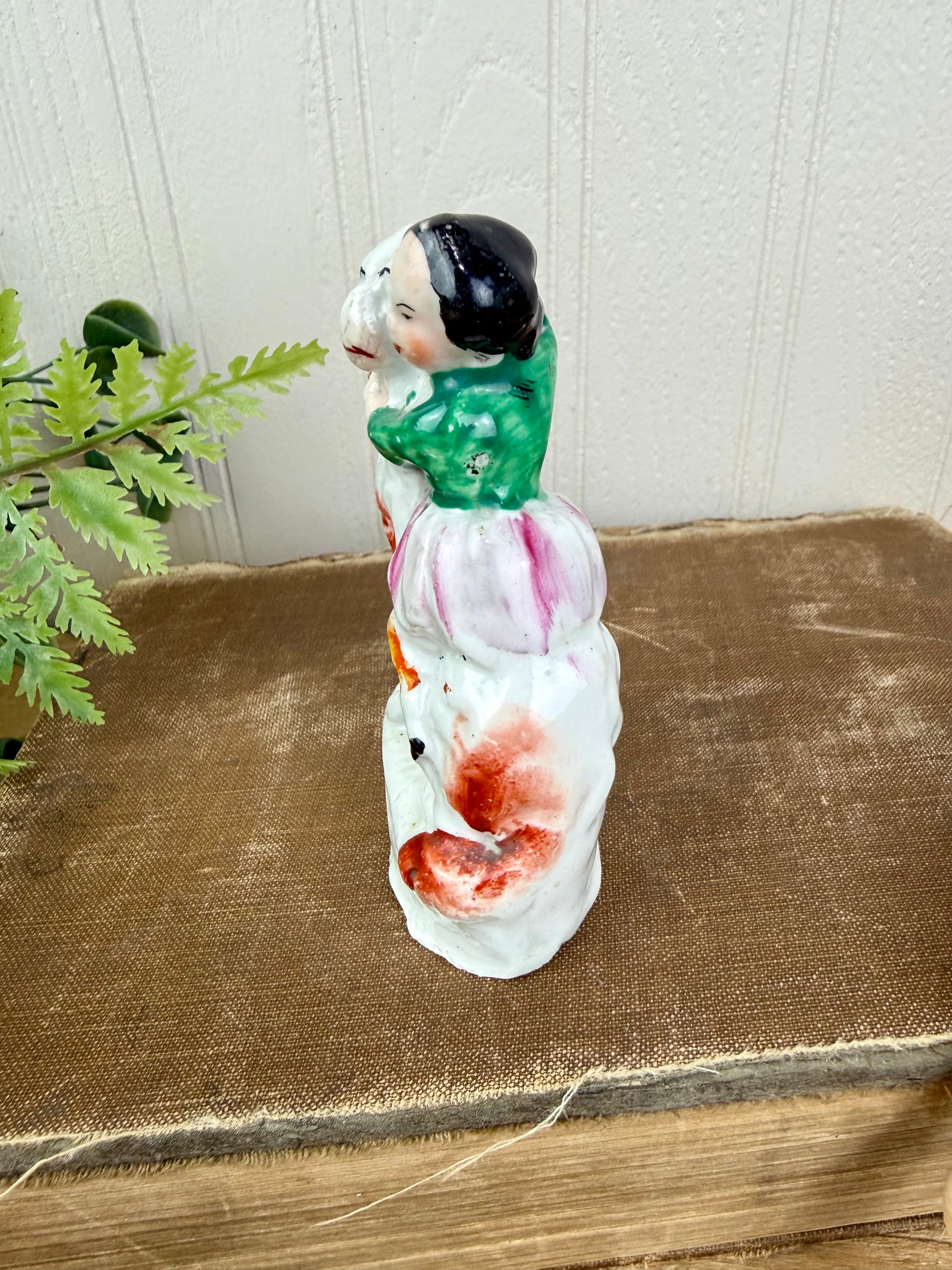 Rare Antique Staffordshire Victorian Spaniel & Child Figurine