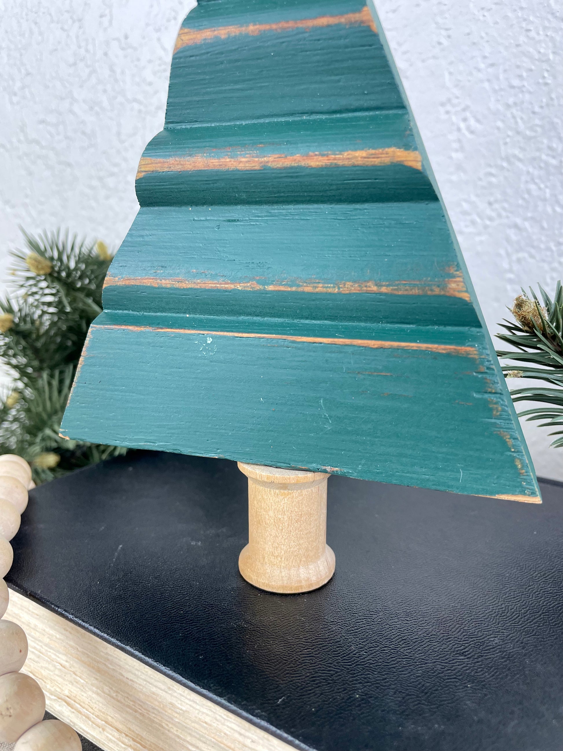 Handmade from reclaimed vintage oak house trim. Painted with chalk paint and distressed for an aged look. Accented with a flower and a vintage spool for the tree trunk. Made to stand up on it’s own on a shelf or table top.