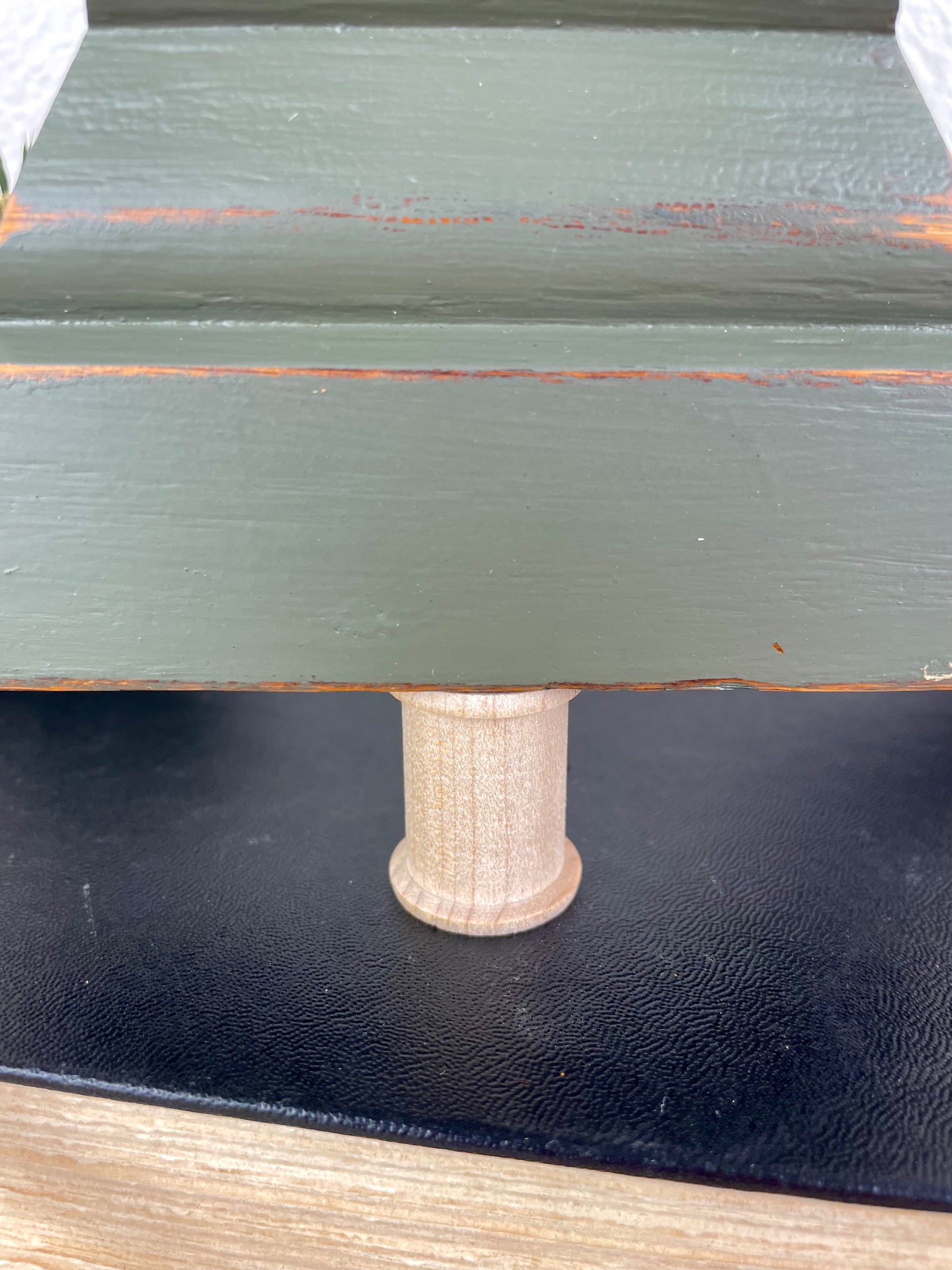Handmade from reclaimed vintage oak house trim. Painted with chalk paint and distressed for an aged look. Accented with a flower and a vintage spool for the tree trunk. Made to stand up on it’s own on a shelf or table top.