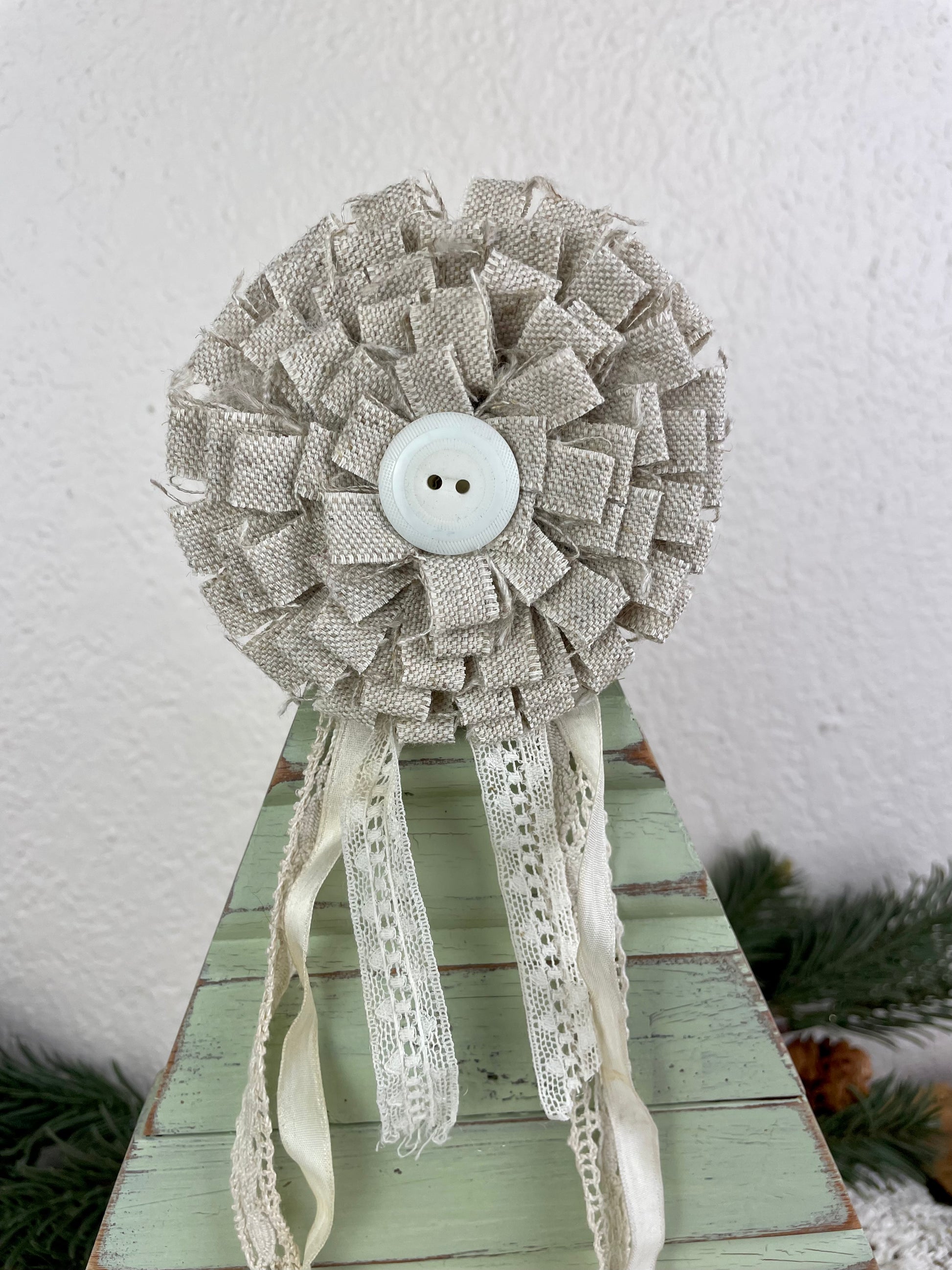 Upcycled Vintage Trim Sage Large Christmas Tree with Handmade Flower