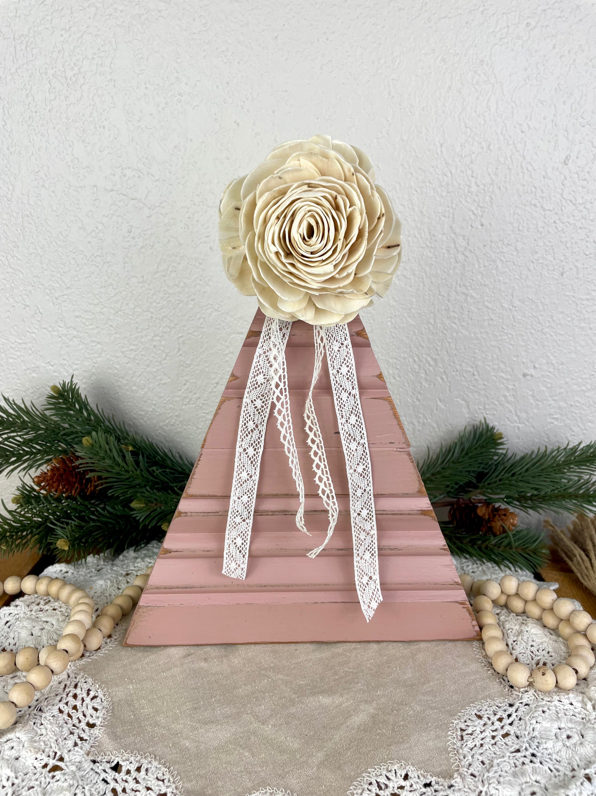 Upcycled Vintage Trim Pink Large Christmas Tree with Wood Flower