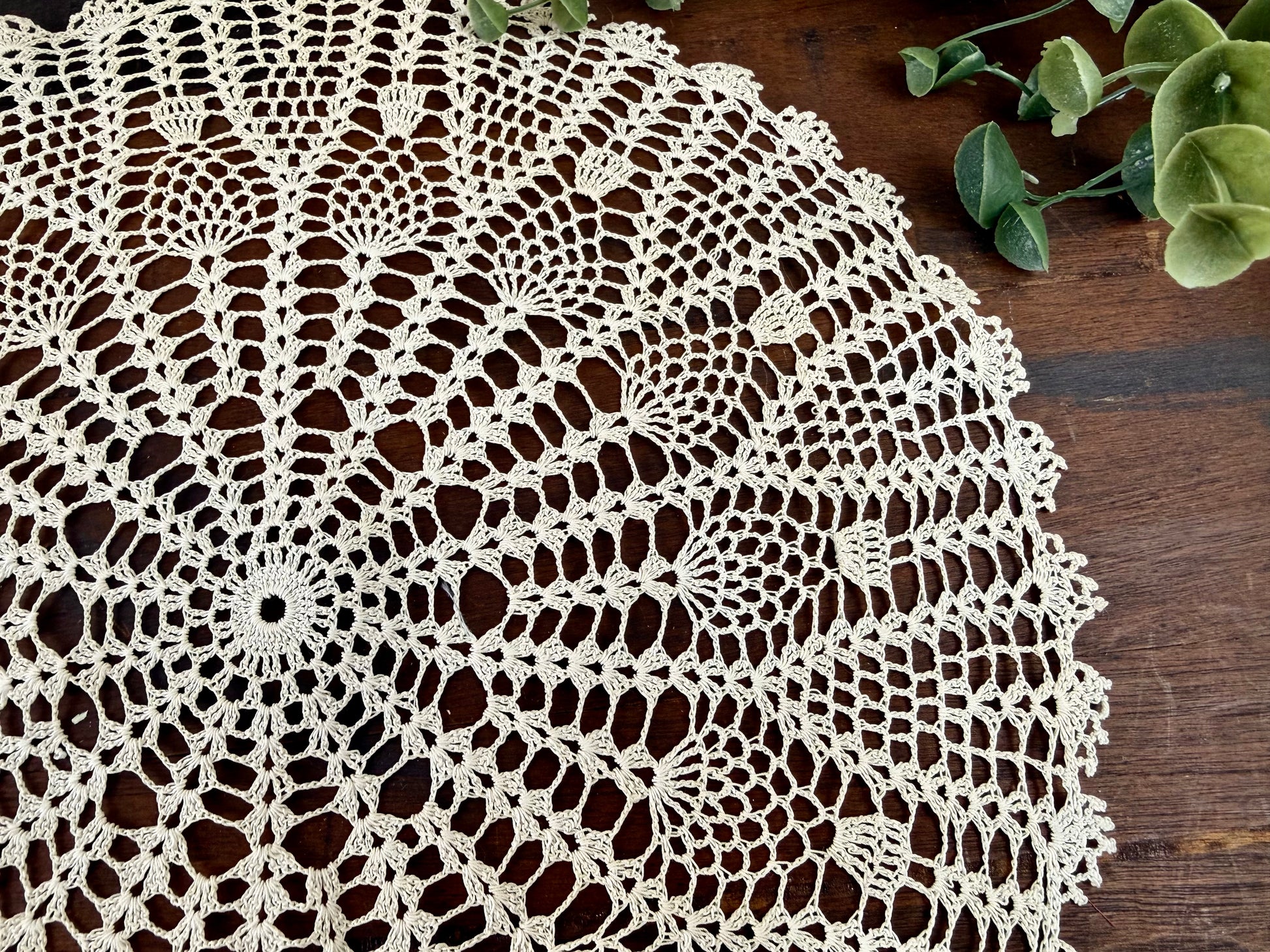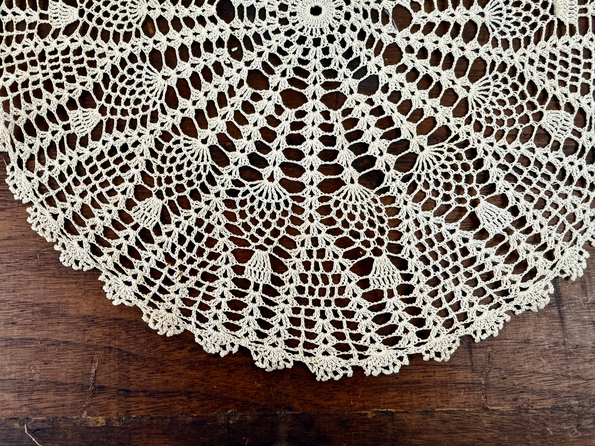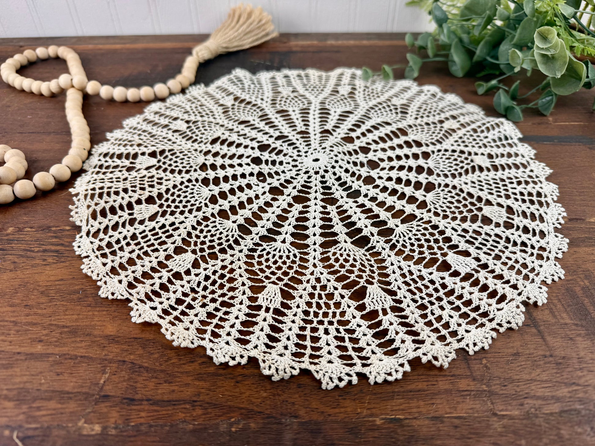 Handmade vintage doily, perfect for decor or crafts. Has more of a cream color for a warmer look.