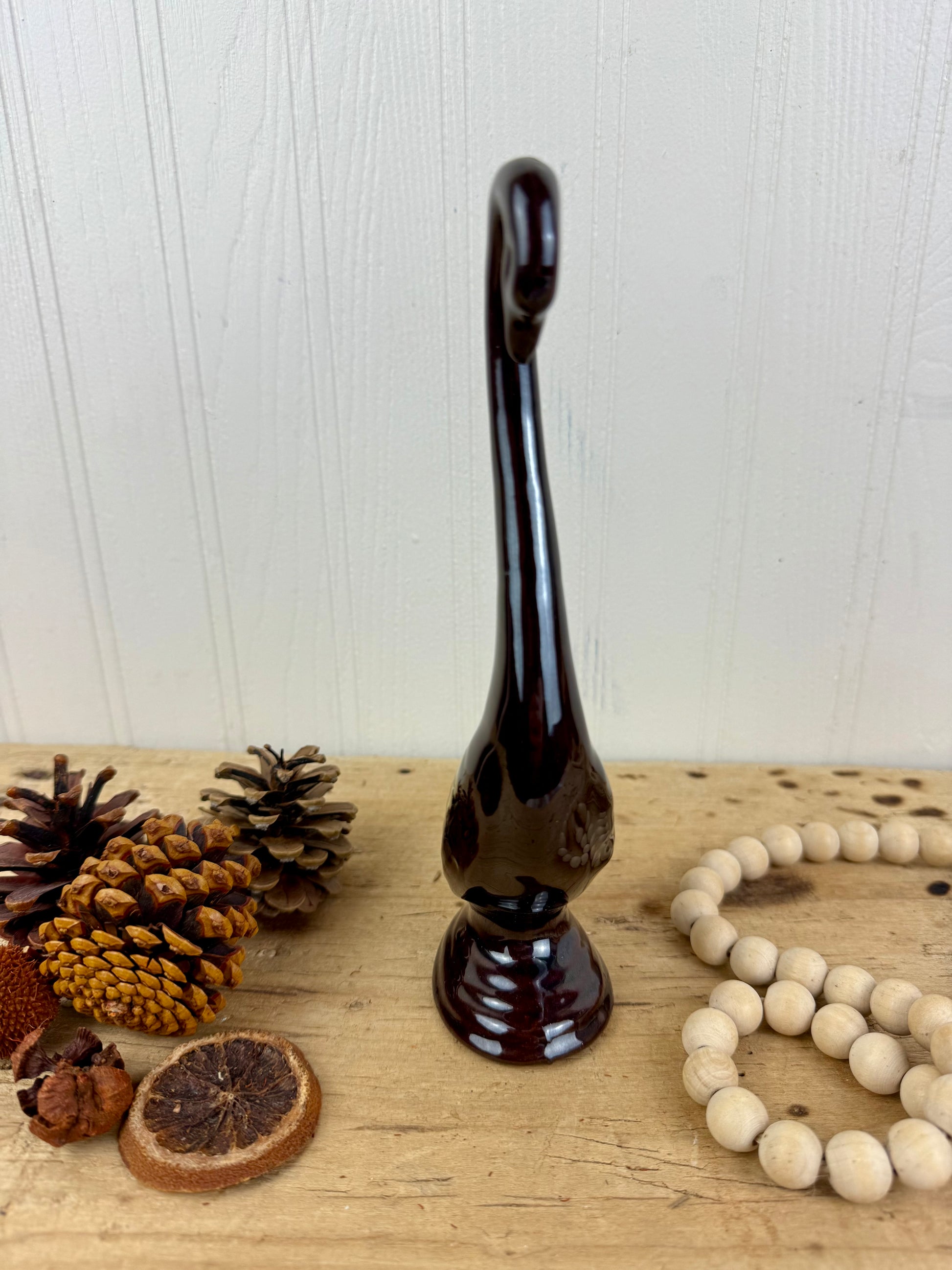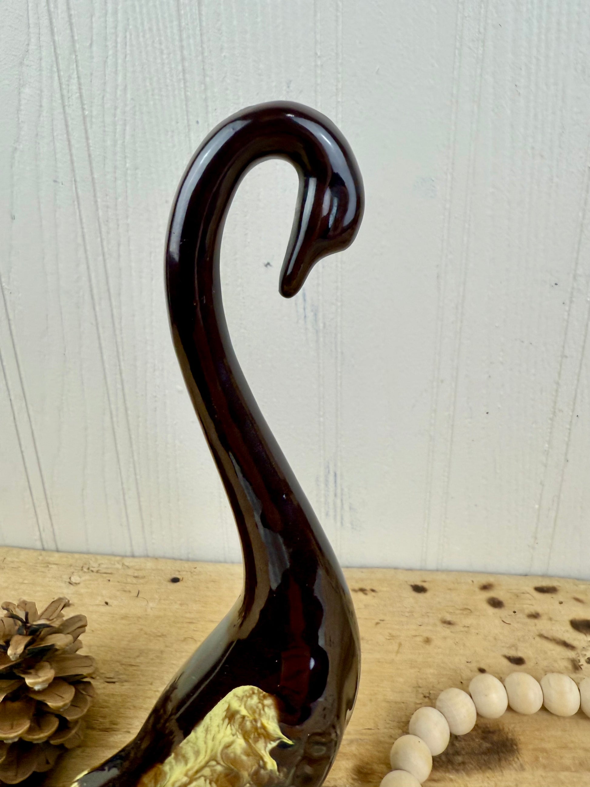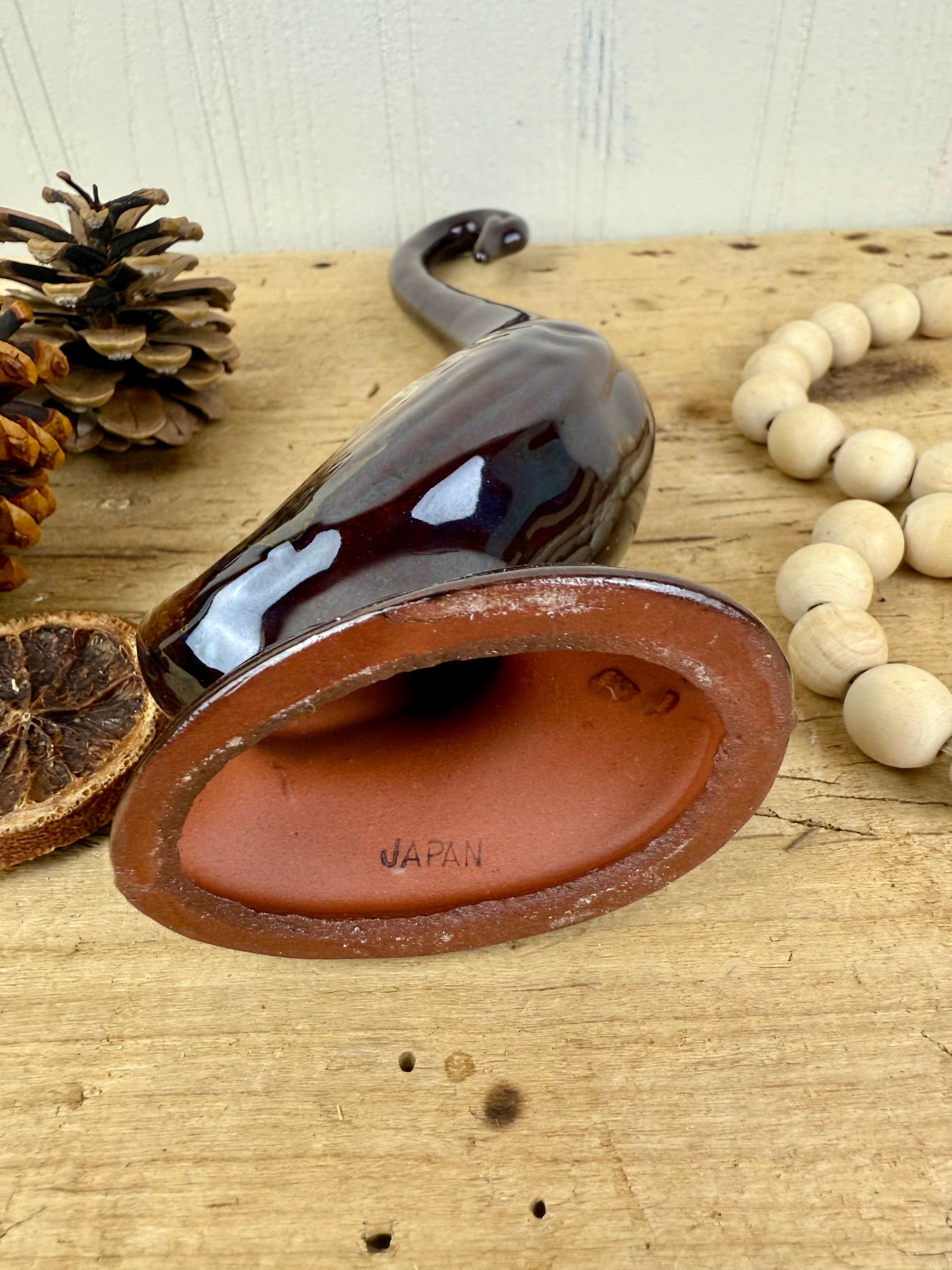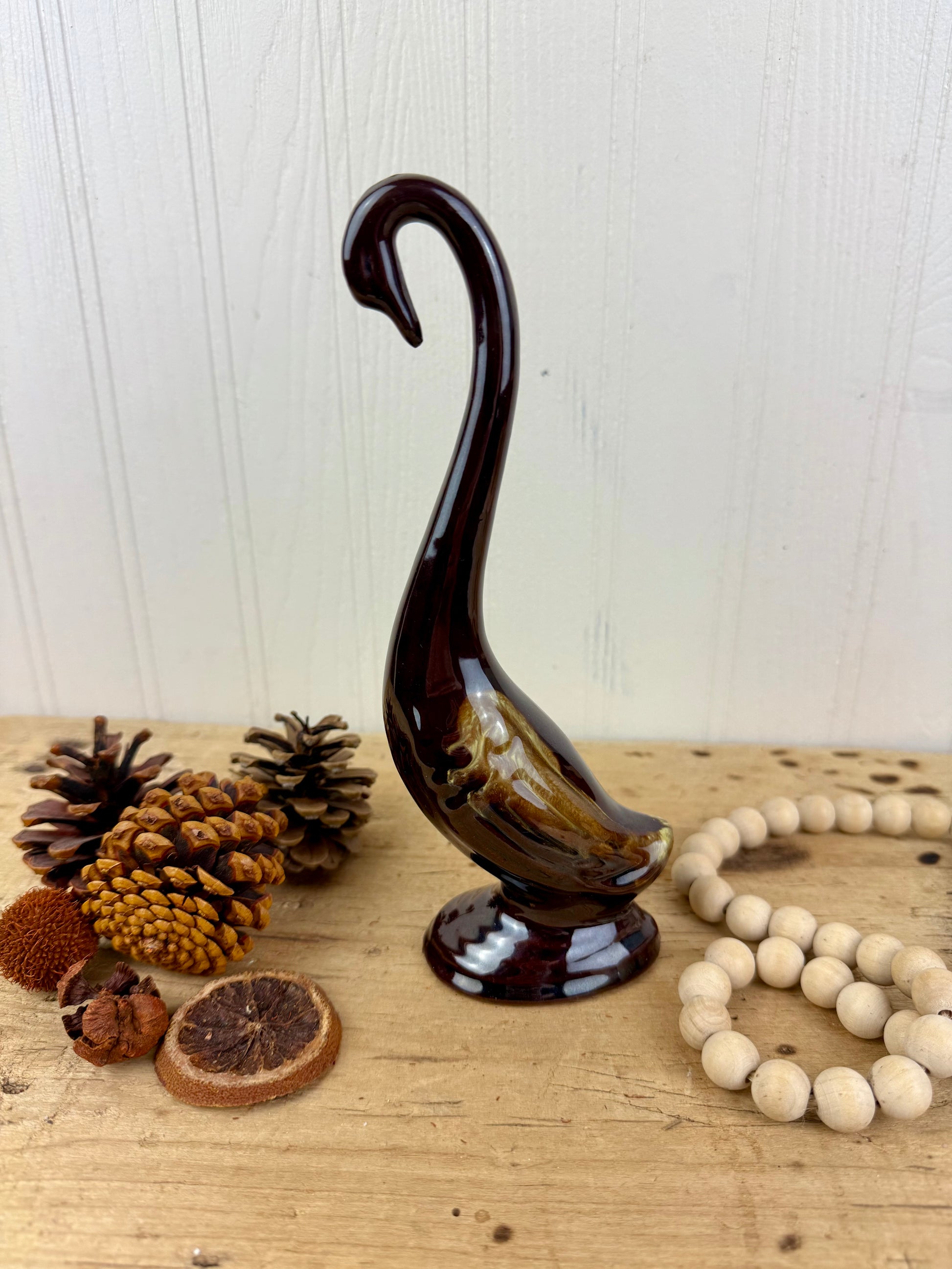 Vintage Enesco Redware Pottery Swan with Drip Glaze