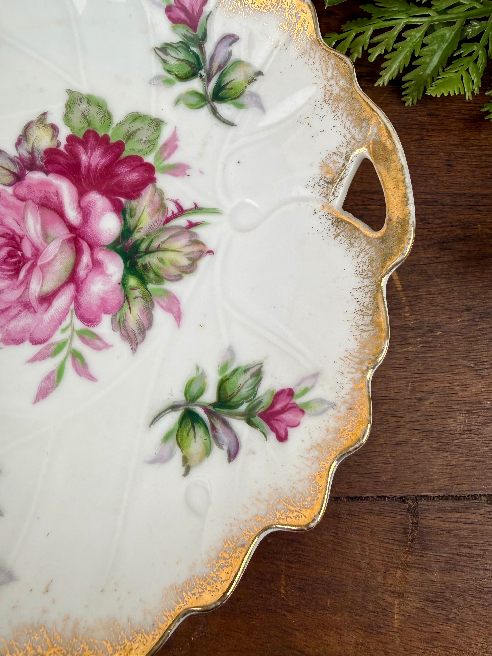 Vintage Japanese Porcelain Plate with Hand Painted Roses