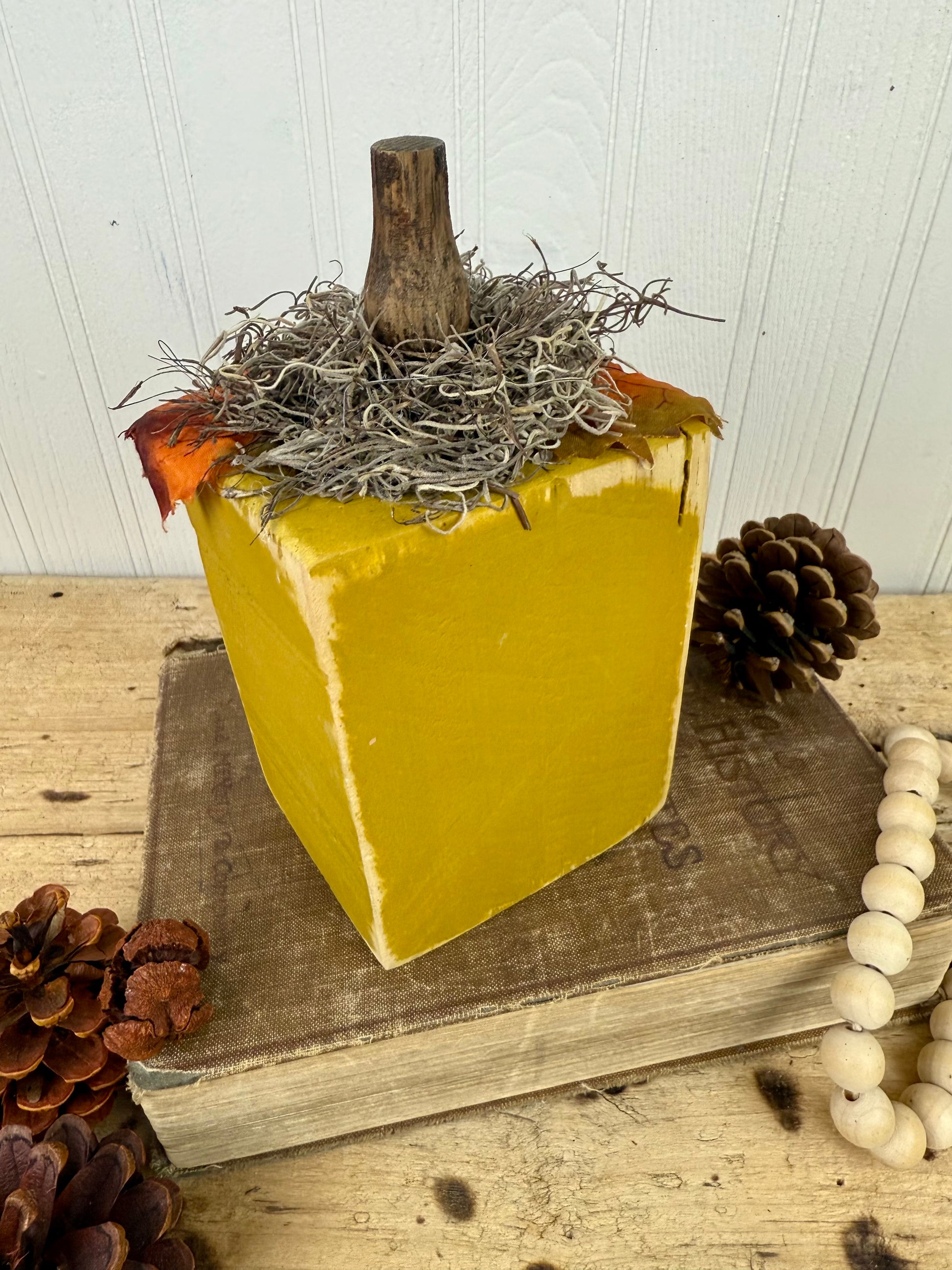 Handmade Reclaimed Wood Yellow Block Pumpkin